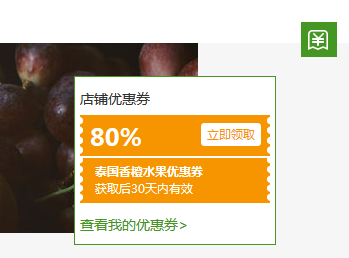 方式一:在首页浏览后点击商品,进入商品详情,点击商家主页,进入商家主页面后在右侧找到优惠券的漂浮窗后,点击即可领取。